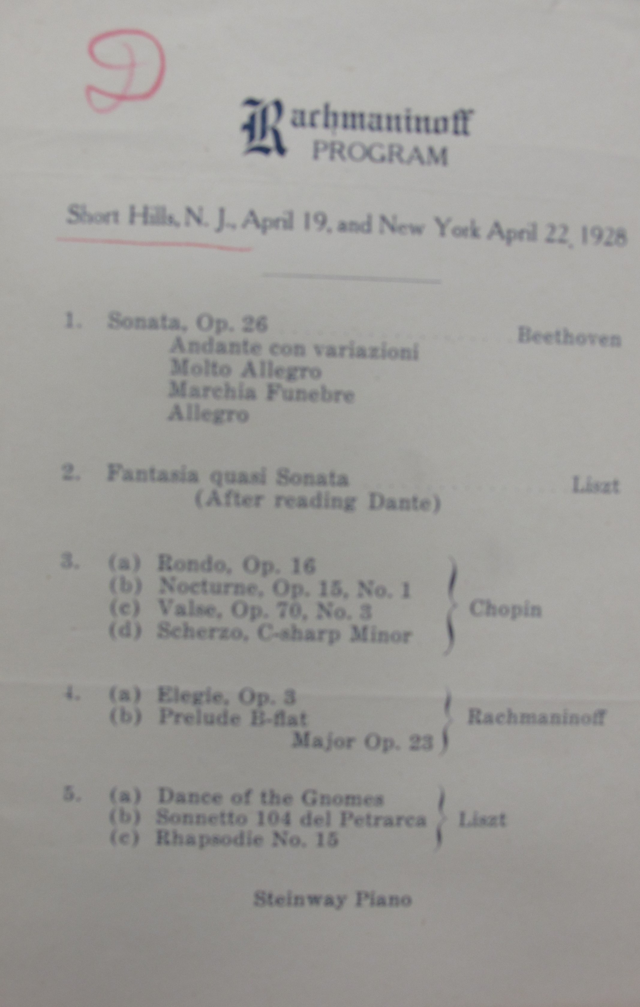 Satina noted that this was Rachmaninoff’s third appearance in New York in the Spring of 1928, and that the concert was a benefit for Russian war invalids abroad, raising $4,635. In the attached review, however, Olin Downes indicates a figure of over $6,000 was raised. LoC, Sergei Rachmaninoff Archive, ML31.R33, Papers of Sophie Satin, boxes 82-89.