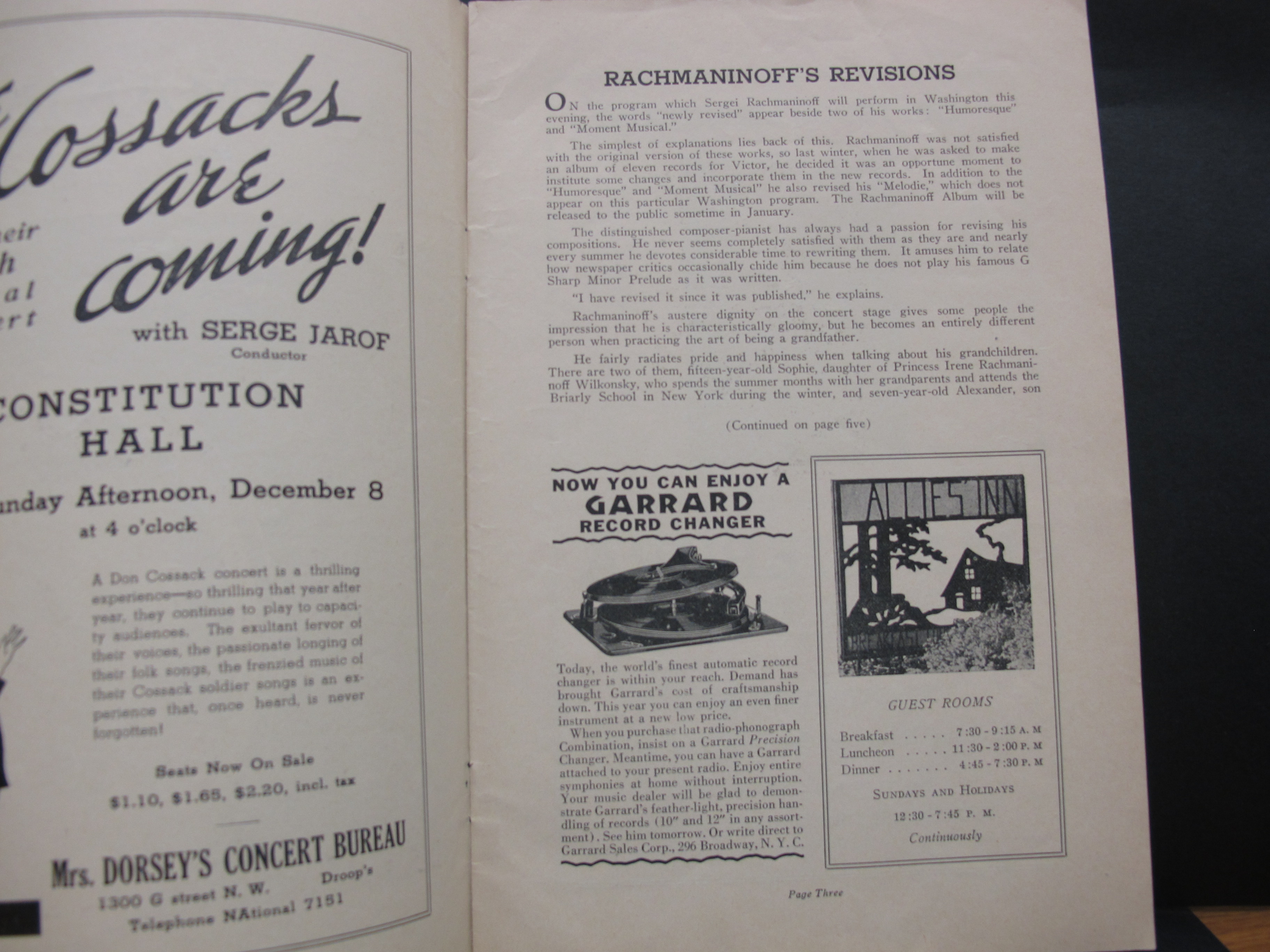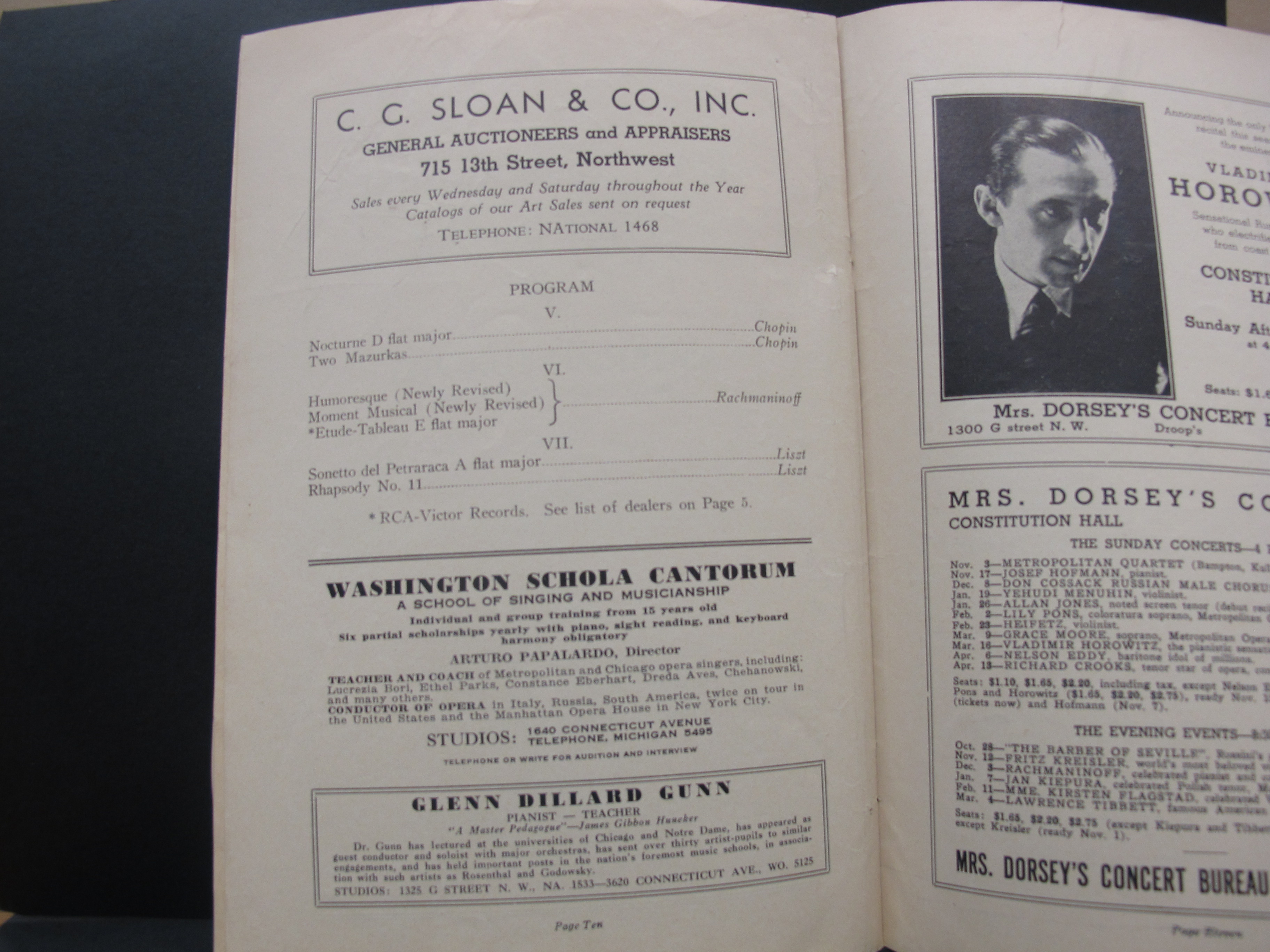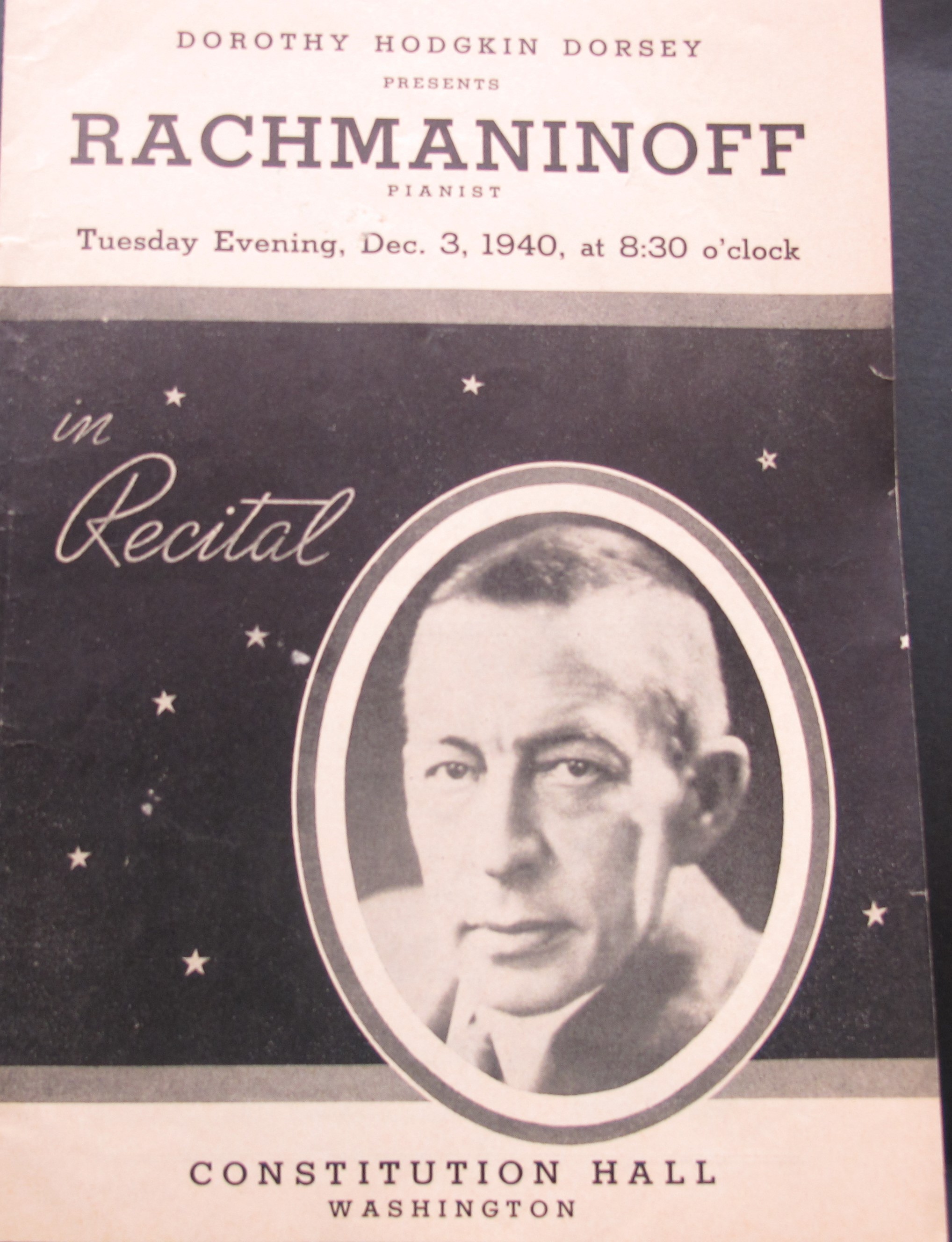 Satina noted that the Humoresque and Moment musical were performed in their revised versions. The attached review from the Times Herald indicates that the Prelude in G major, op. 32, no. 5, might have been played in place of the Moment musical, however the review from the Evening Star states the Moment musical was played. LoC, Sergei Rachmaninoff Archive, ML31.R33, Papers of Sophie Satin, boxes 82-89.
