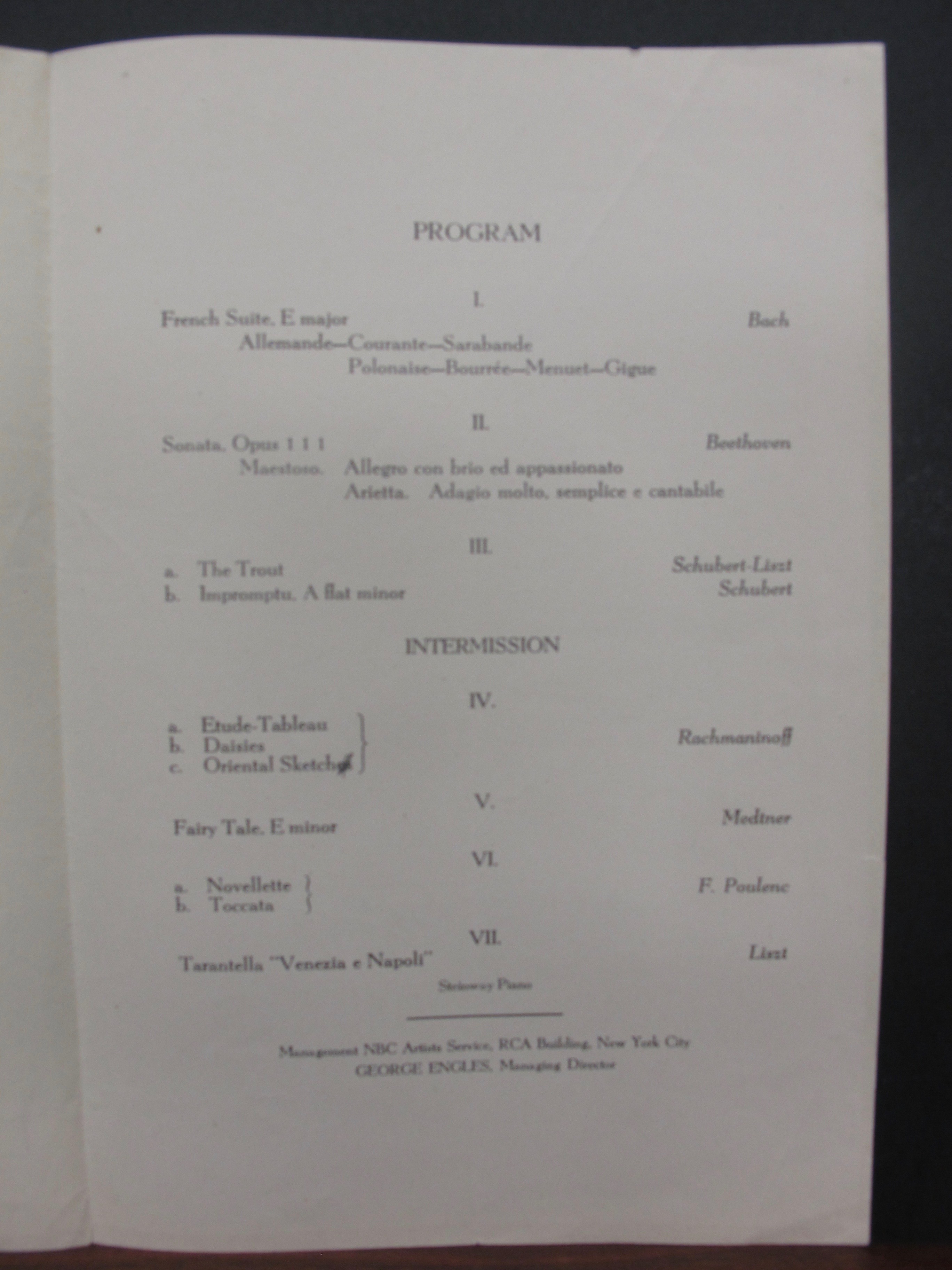 While the key of the Schubert Impromptu was consistently listed as A flat minor, Martyn (p. 434) confirms it was D. 899, no. 4. It is likely that Medtner’s Fairy Tale was op. 34, no. 2. LoC, Sergei Rachmaninoff Archive, ML31.R33, Papers of Sophie Satin, boxes 82-89.