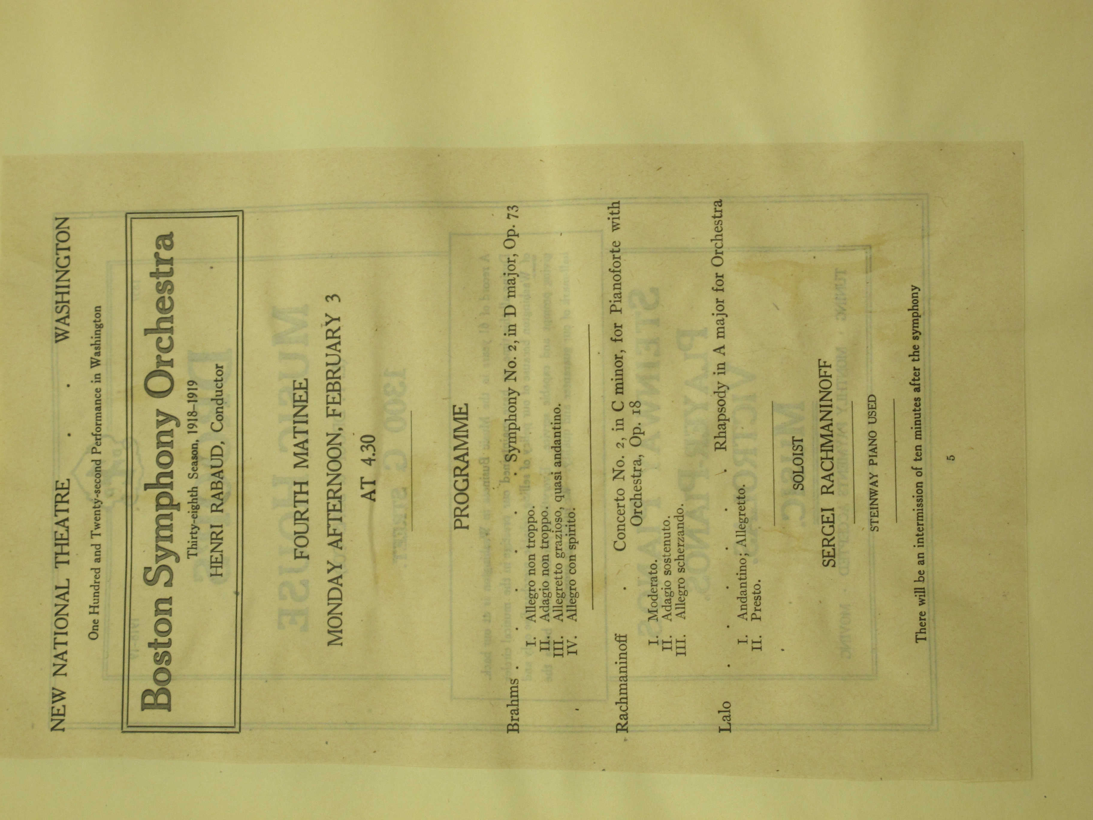 The concert began at 4.30pm. LoC, Sergei Rachmaninoff Archive, ML31.R33, Papers of Sophie Satin, boxes 82-89.