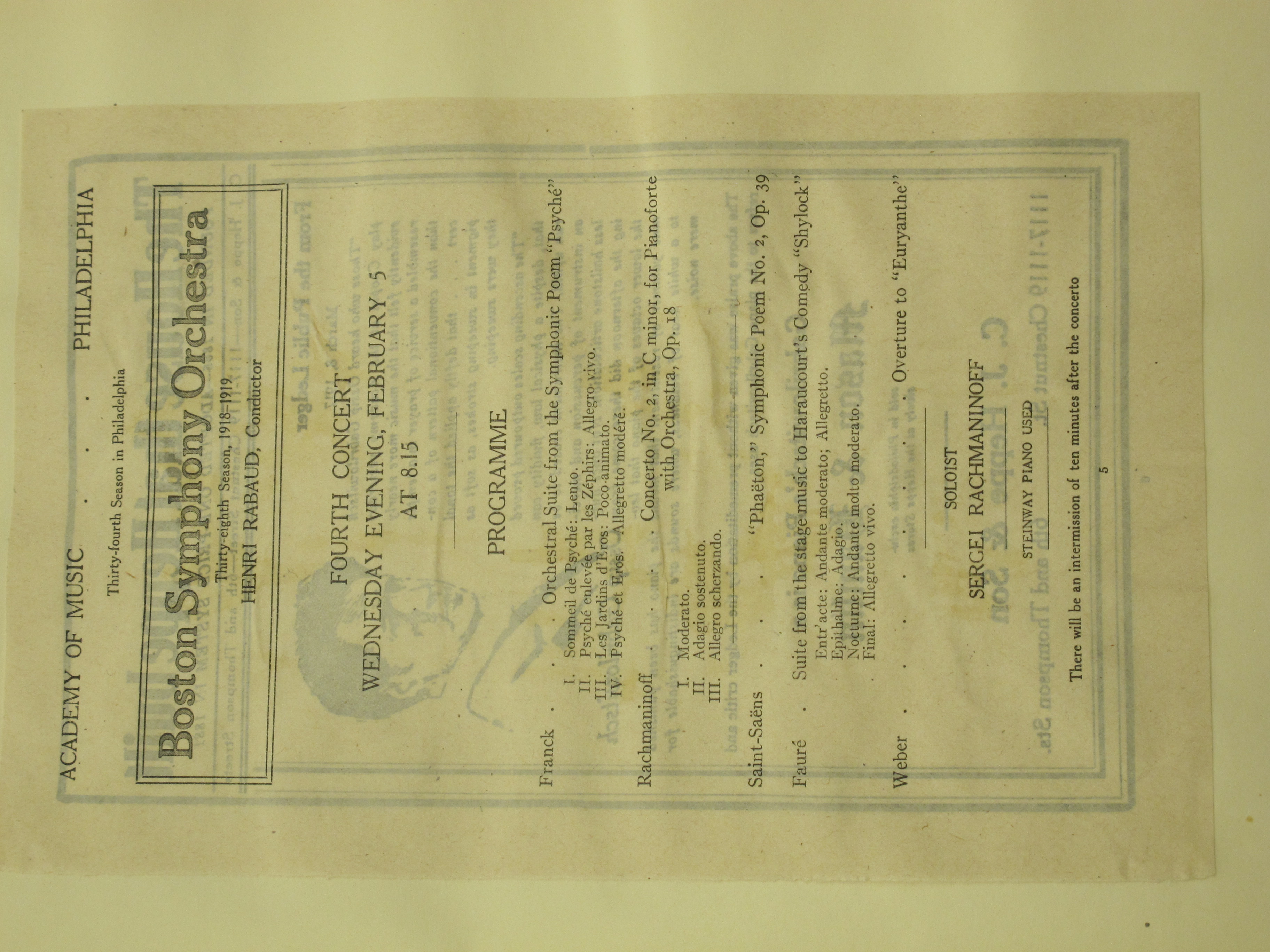 LoC, Sergei Rachmaninoff Archive, ML31.R33, Papers of Sophie Satin, boxes 82-89. Review 2: Philadelphia Inquirer 1919.02.06 p. 10.