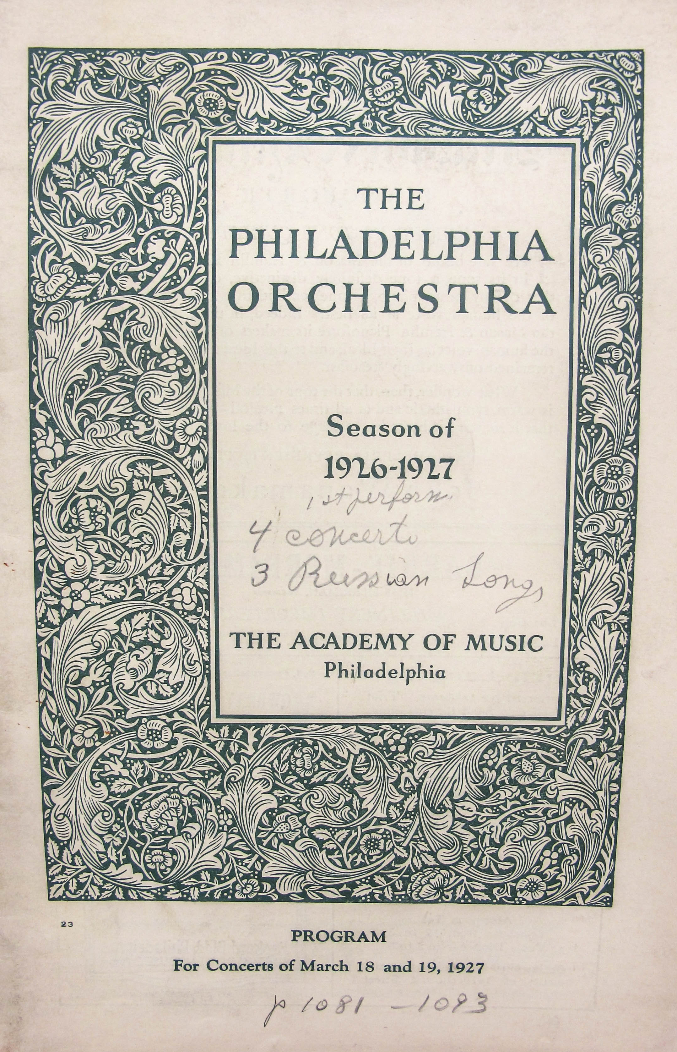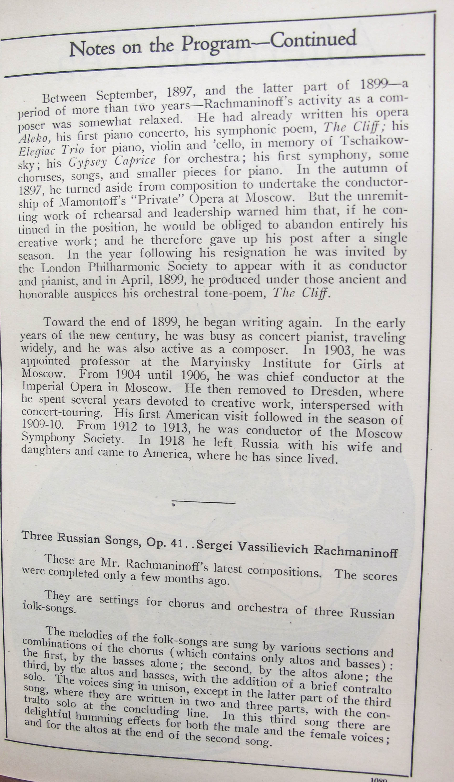 Satina notes that this was the first performance of op. 40 and op. 41. LoC, Sergei Rachmaninoff Archive, ML31.R33, Papers of Sophie Satin, boxes 82-89.