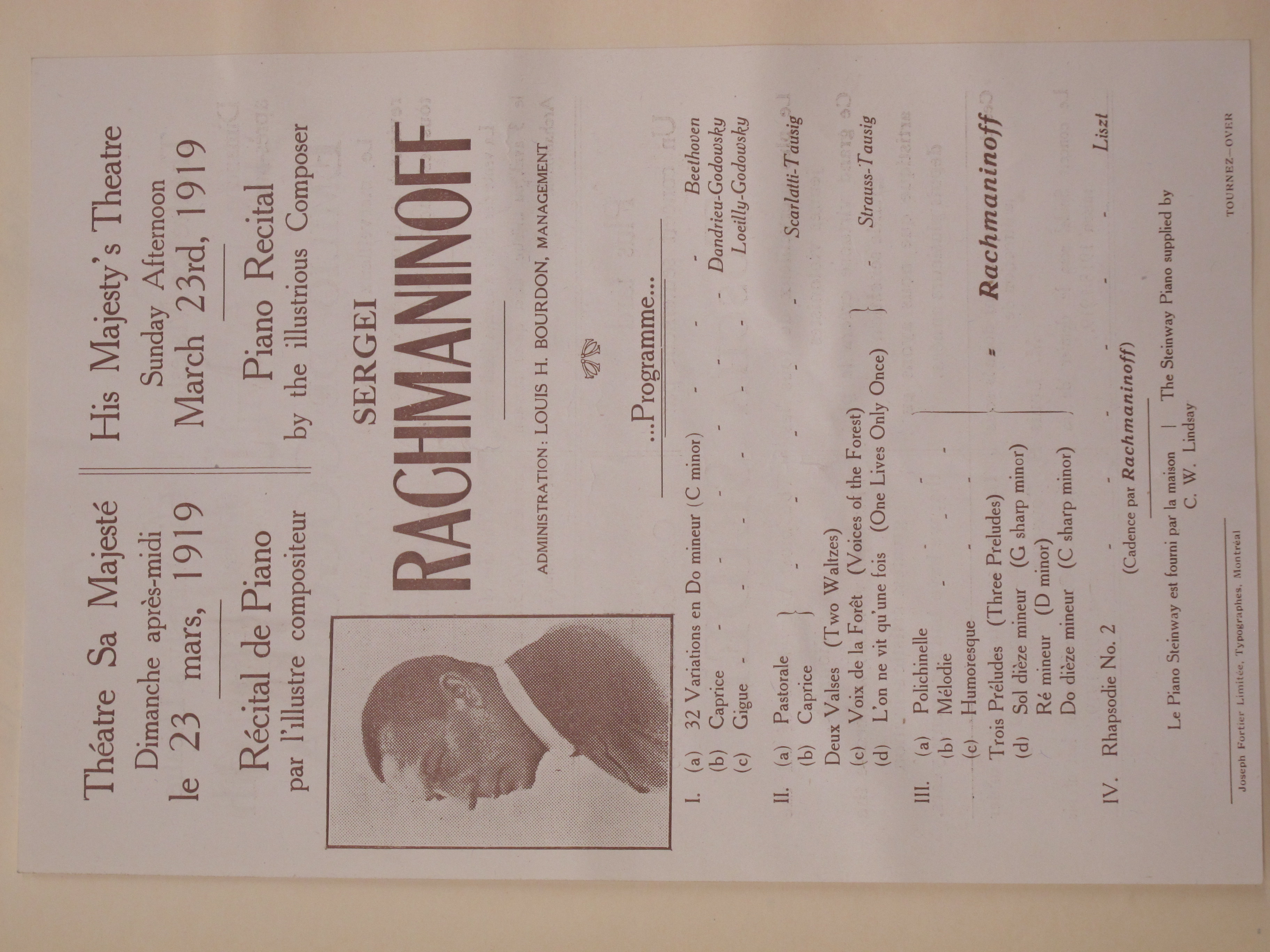 The attached reviews indicate a Chopin Waltz in A flat major was played as an encore after the Strauss-Tausig works, while Tchaikovsky's Troika was given at the end. LoC, Sergei Rachmaninoff Archive, ML31.R33, Papers of Sophie Satin, boxes 82-89.