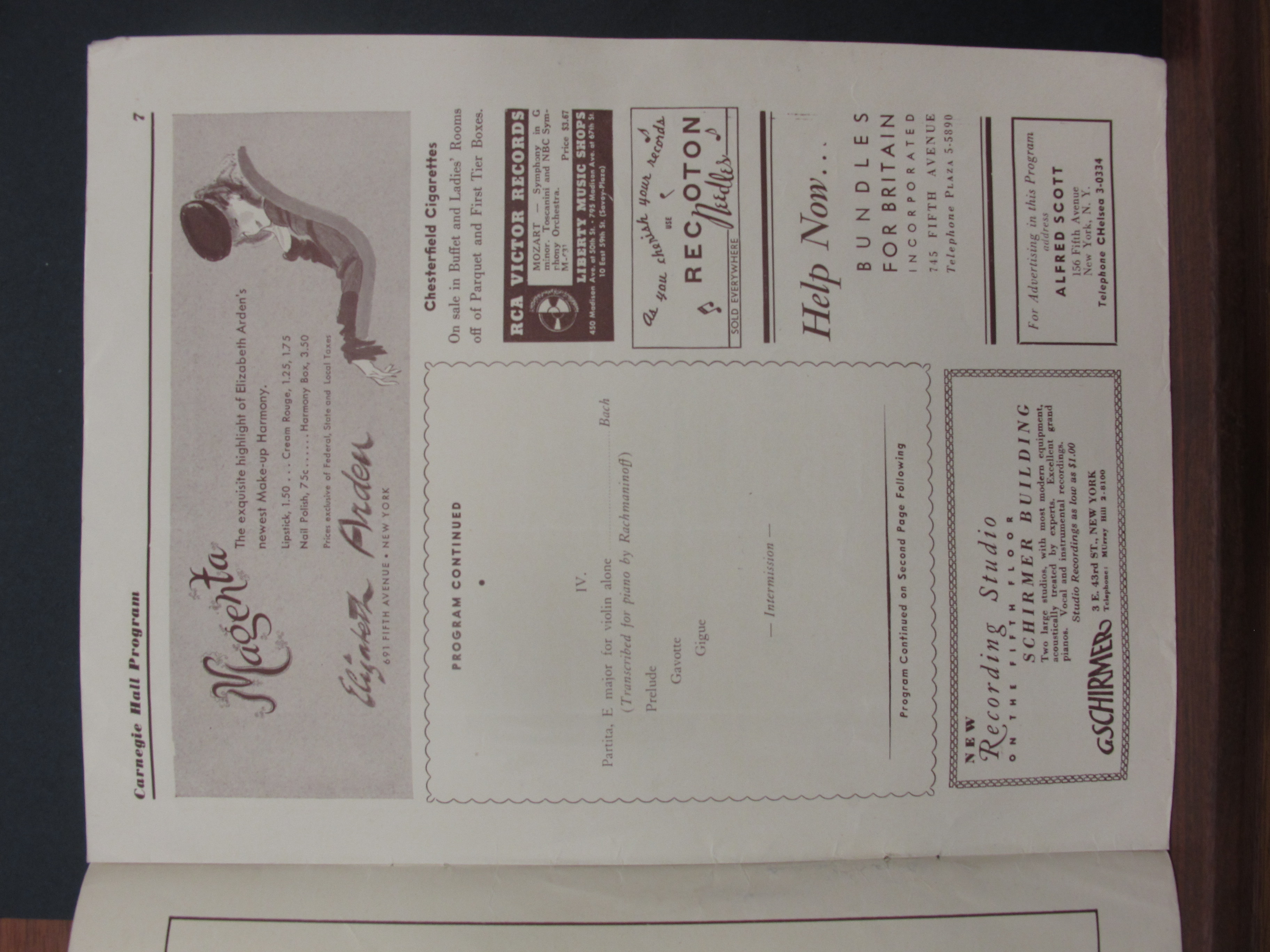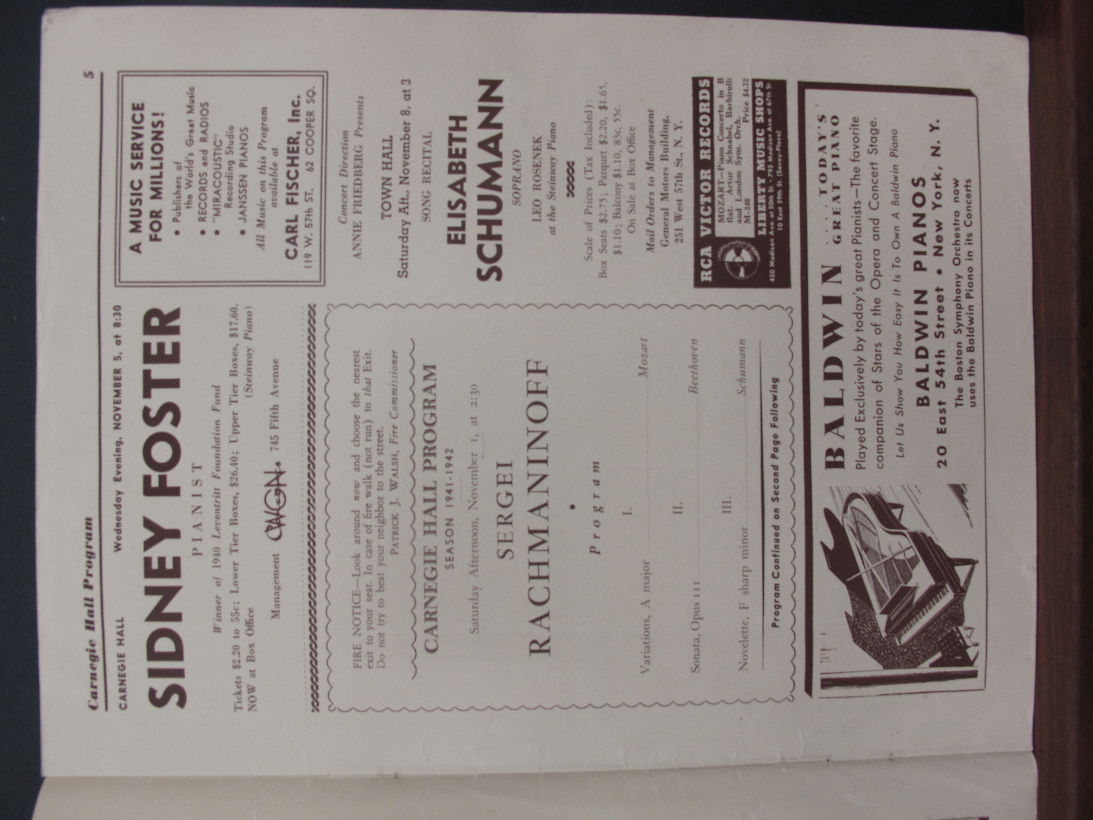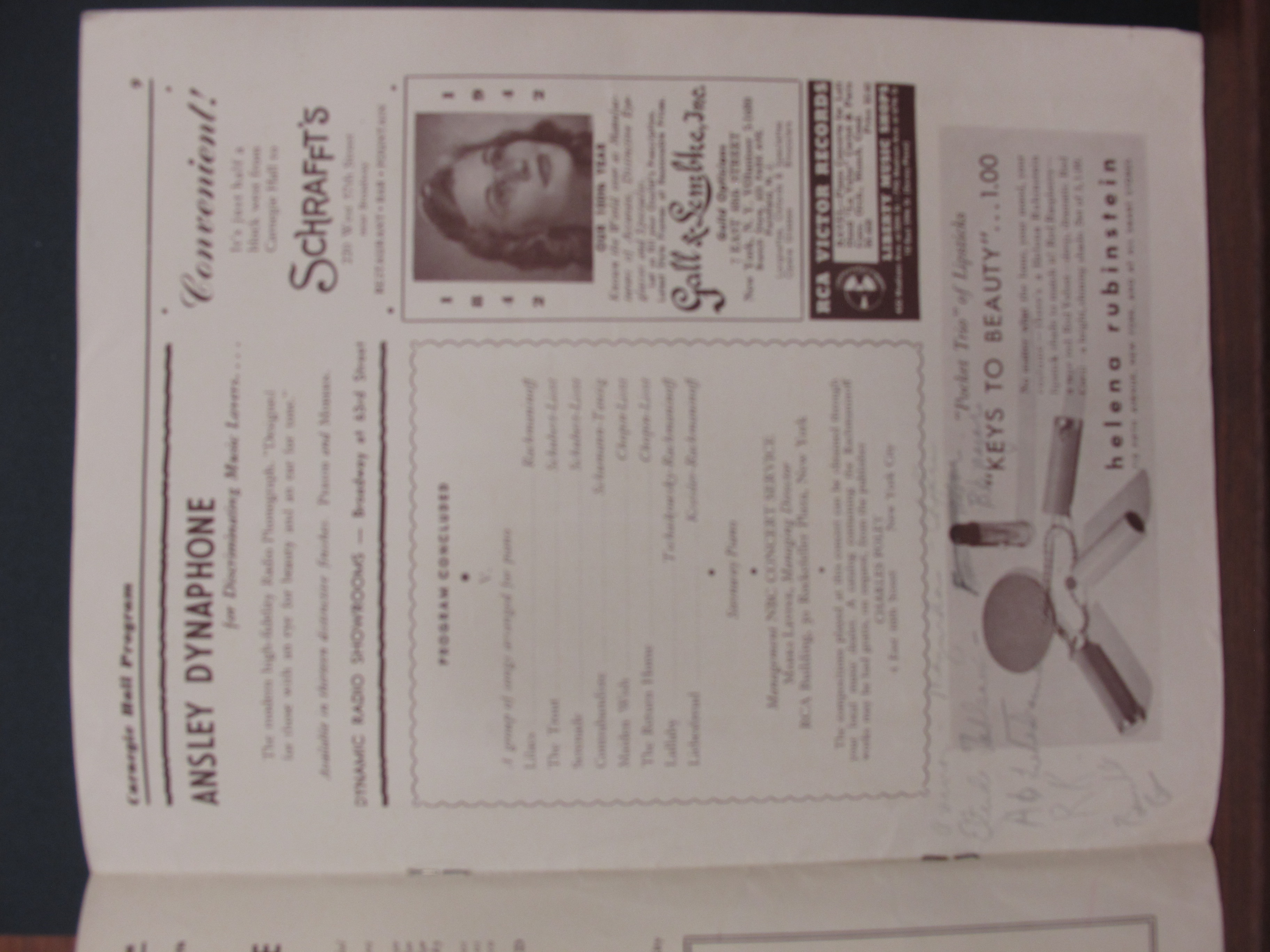 Satina notes that ‘the entire proceed was given by Rachmaninoff to the Russian War charity’. The concert began at 2.30pm. LoC, Sergei Rachmaninoff Archive, ML31.R33, Papers of Sophie Satin, boxes 82-89.