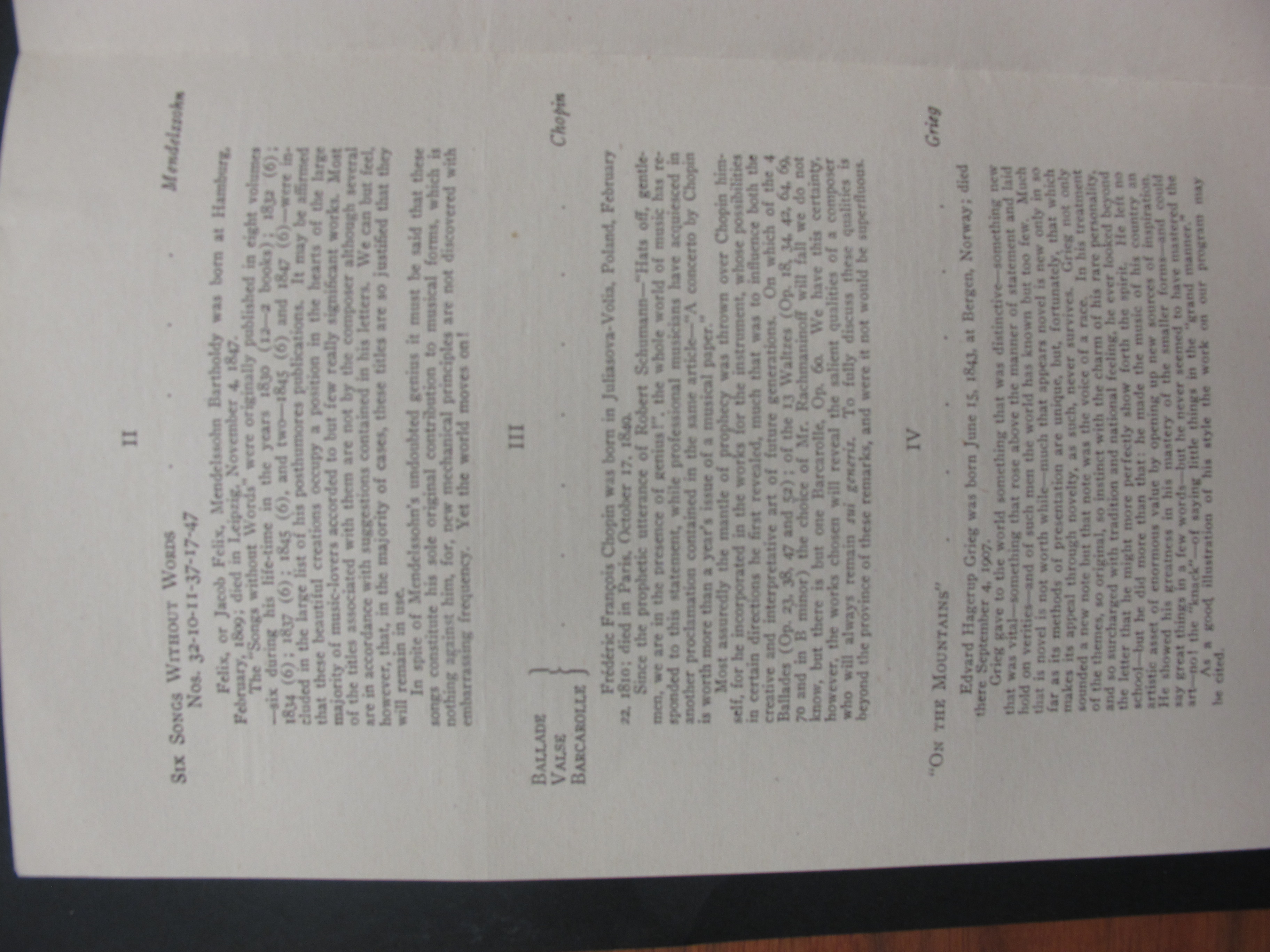 Six Songs Without Words: nos. 32, 10, 11, 37, 17, 47