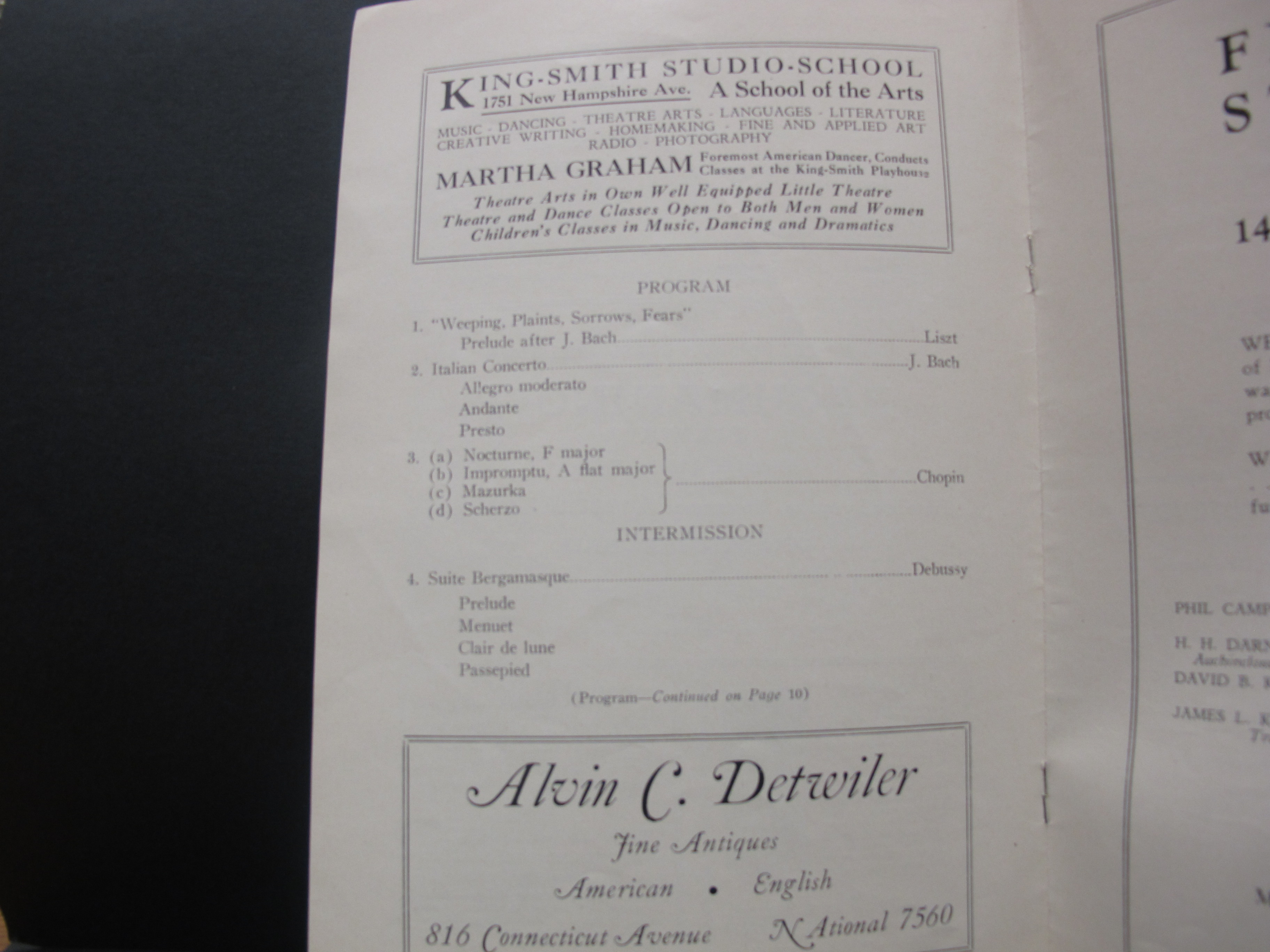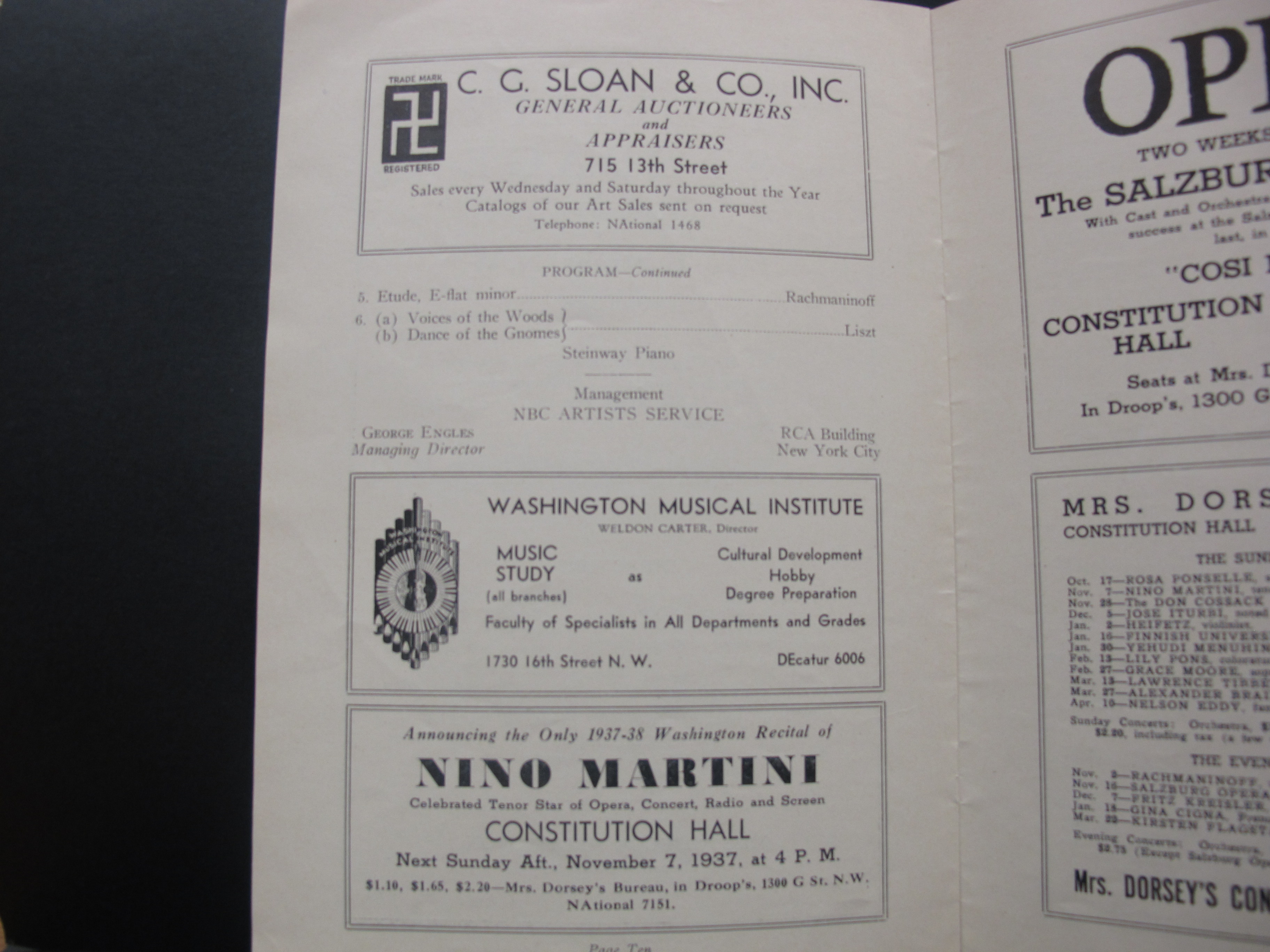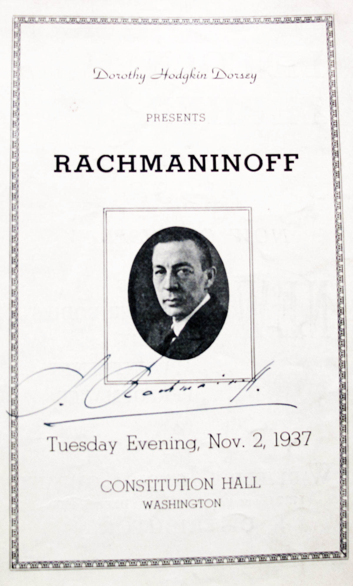 Satina believed that the Etude-Tableau in E flat minor, op. 33, was played, according to the program, however two of the attached reviews indicate the Prelude in G major, op. 32, no. 5, was played in its place. The Prelude in C sharp minor, op. 3, no. 2, is noted as one of a number of encores. LoC, Sergei Rachmaninoff Archive, ML31.R33, Papers of Sophie Satin, boxes 82-89.