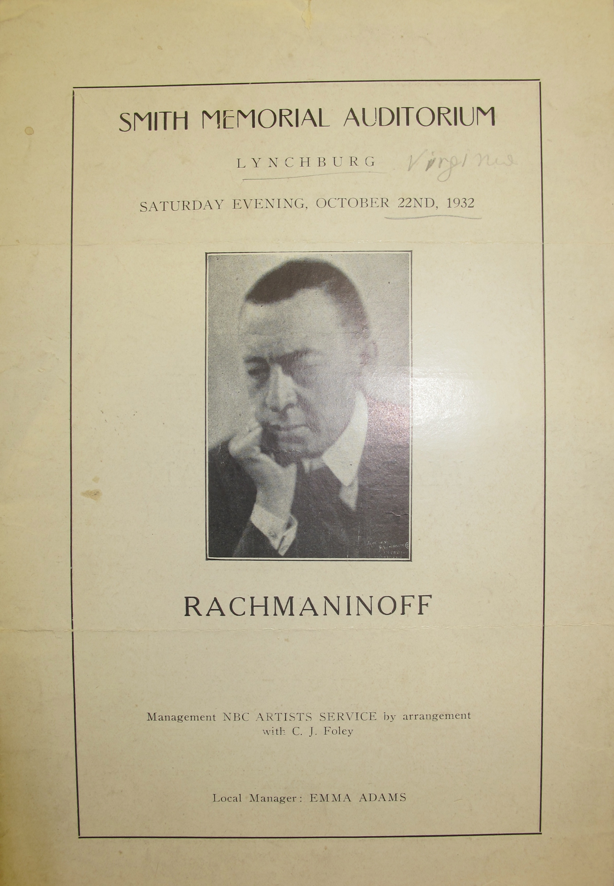 The Prelude in C sharp minor, op. 3, no. 2, two works by Chopin, and Rachmaninoff's transcription of Rimsky-Korsakov's Bumble Bee, are noted as the encores in the attached review. LoC, Sergei Rachmaninoff Archive, ML31.R33, Papers of Sophie Satin, boxes 82-89.